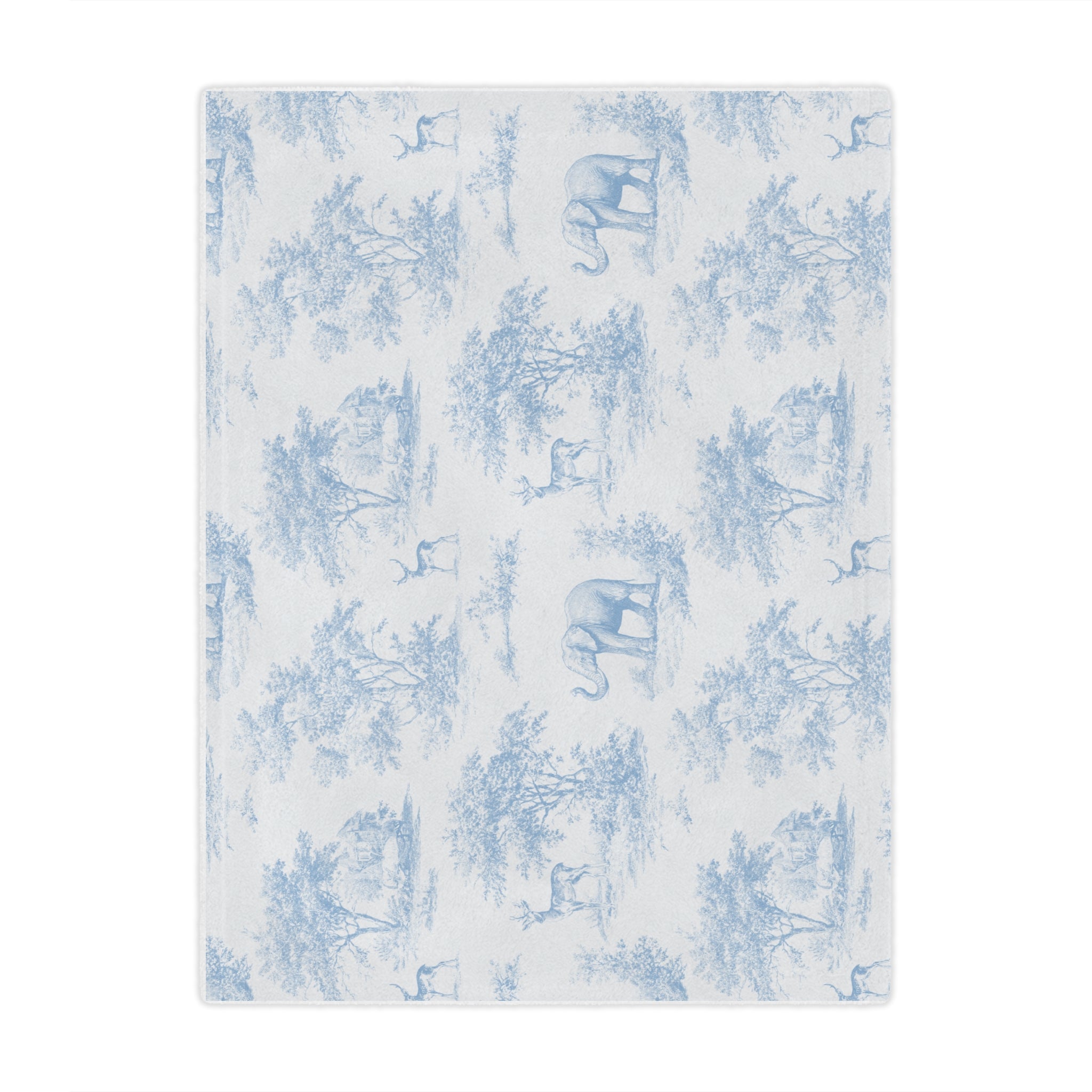 Baby Swaddle Blanket, Blue Toile Elephant & Deer