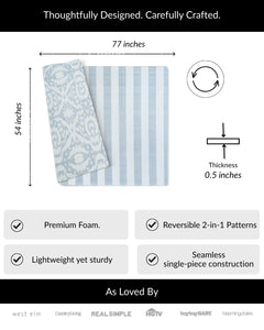 • Reversible with modern, designer prints - Created in collaboration with Erin Gates Design, this mat features a sophisticated antelope print on one side and a modern broken stripe pattern on the other. Easily flip the mat to match your room’s aesthetic—it's functional and beautiful enough to leave out 24/7, blending beautifully into any home decor.