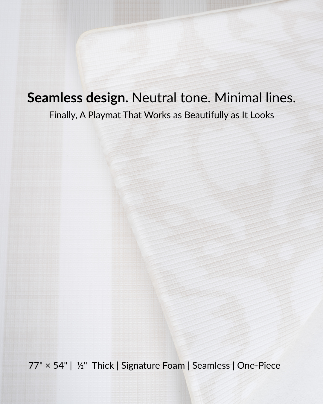 • Seamless mat, no puzzle pieces or assembly required. Just unroll and go! Its one-piece design provides a safe, spacious area for babies learning to roll, toddlers finding their footing, and even adults joining in for a stretch or yoga session. At 1/2" thick, the premium foam adds plush comfort for every stage of childhood and beyond.