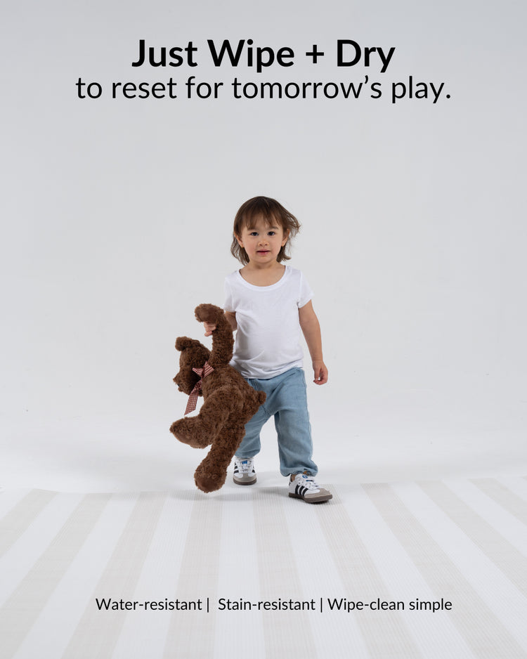 Your new everyday essential is here. The Wander & Roam Signature Foam Play Mat is thoughtfully designed to support your family’s daily rhythm—from baby’s first tummy time to toddler play and even your own yoga stretches. Made from ultra-soft, premium foam, this large one-piece mat provides a cushioned, non-toxic space for safe exploration and relaxation. Crafted to grow with your family, the mat is reversible, offering two modern designs to complement any room in your home. And when life gets messy (because it always does), caring for your mat is simple: just wipe it clean with a damp cloth and dry—it’s both water-resistant and stain-resistant, ready to handle the everyday spills and surprises of parenthood. Free from over 28 harmful chemicals, the Wander & Roam play mat proves that safety, style, and simplicity can go hand-in-hand.Everyday family life, beautifully reimagined. The Wander & Roam Signature Foam Play mat blends style, comfort, and performance to meet the rhythm of modern living. From baby’s tummy time to toddler adventures, from Mom’s yoga flow to slow Sunday lounging, it’s the mat that moves with you.