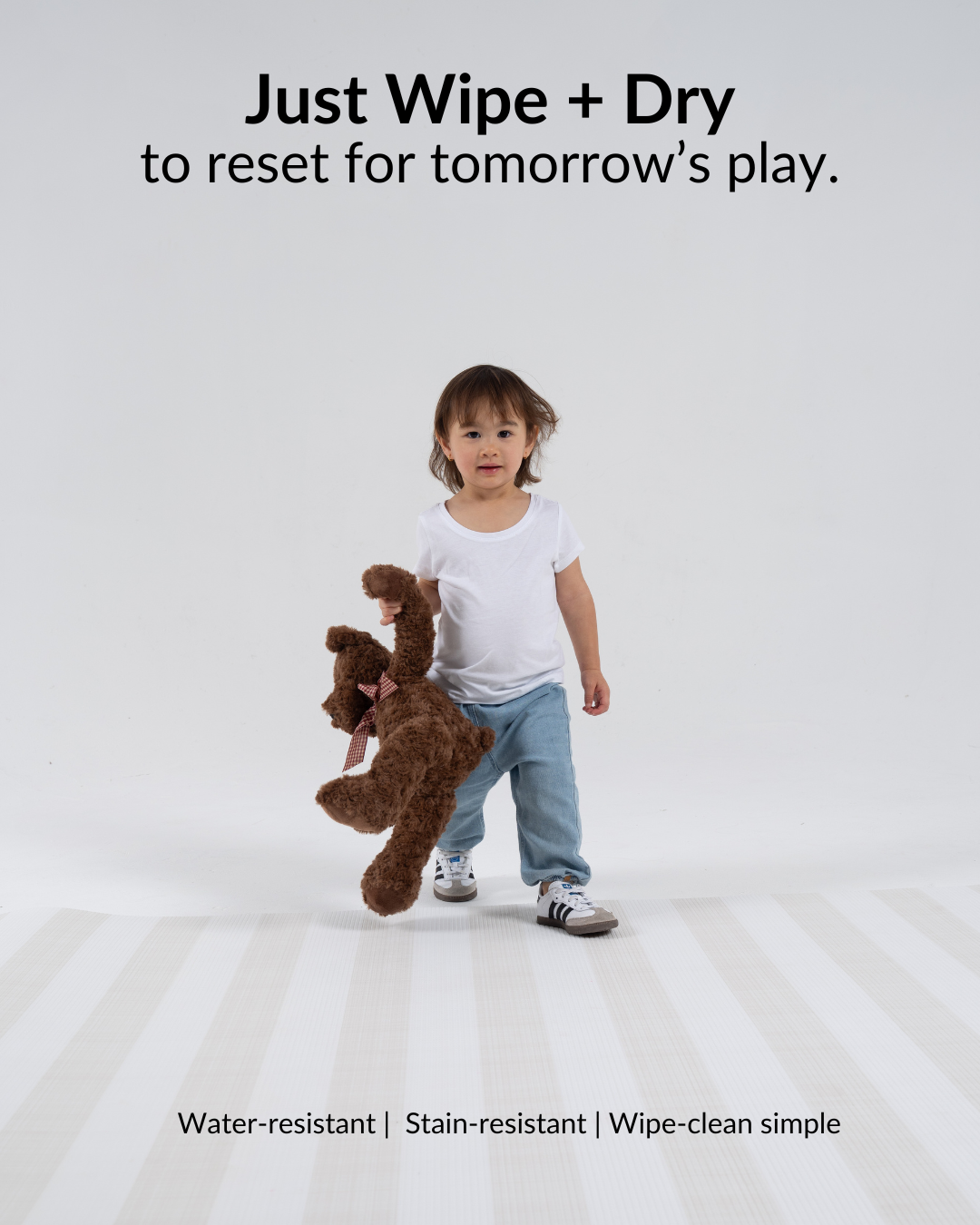 • Waterproof, stain-resistant & easy to clean - Life with little ones is messy, but cleanup doesn’t have to be. This mat is water-resistant and designed to repel spills, stains, and everyday dirt. Just wipe it down with a damp cloth and dry—no special cleaners or scrubbing required. Whether it’s snack time, craft time, or crawling time, it’s always ready for action.
