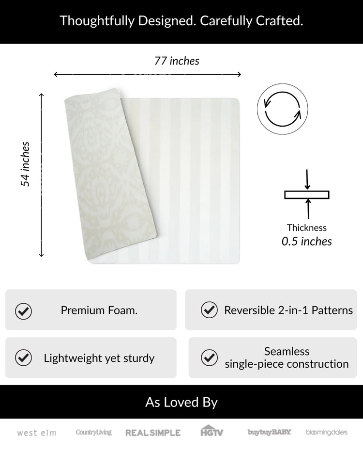• Reversible with modern, designer prints - Created in collaboration with Erin Gates Design, this mat features a sophisticated antelope print on one side and a modern broken stripe pattern on the other. Easily flip the mat to match your room’s aesthetic—it's functional and beautiful enough to leave out 24/7, blending beautifully into any home decor.