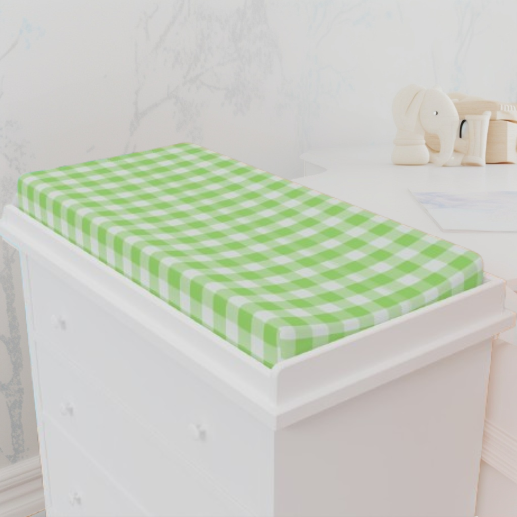 Baby Changing Pad Cover, Spring Green Gingham
